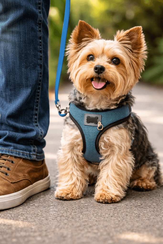 One popular alternative is the harness. Harnesses distribute pressure more evenly across a dog’s body, particularly around the chest and back, rather than the neck, which can help prevent injuries that are common with collars. This is particularly important for Yorkies, as their tracheas can be fragile. A well-fitted harness reduces the risk of tracheal collapse, a concern for many small breeds, as it minimizes strain during walks.